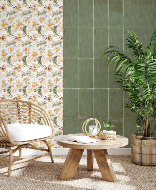 Ceramica Estilker – Dream Palm 15x30 cm | Dekorfliese Palmen-Relief Hochglanz