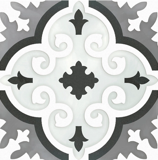 Ceramica Estilker – Heritage ML-3357 30x30 cm | Florale Dekorfliese Schwarz-Weiß